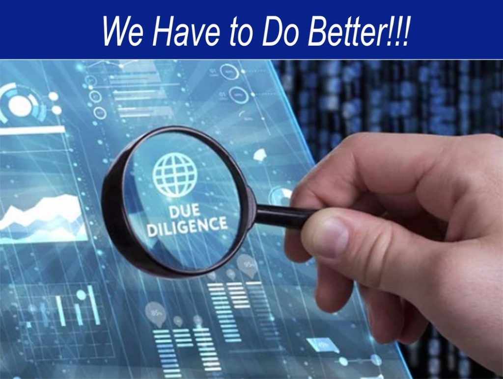 What is due diligence? This is what we have to do in the corporate world with our company’s monies, especially if we have stockholders. We must spend money wisely or face harsh penalties.